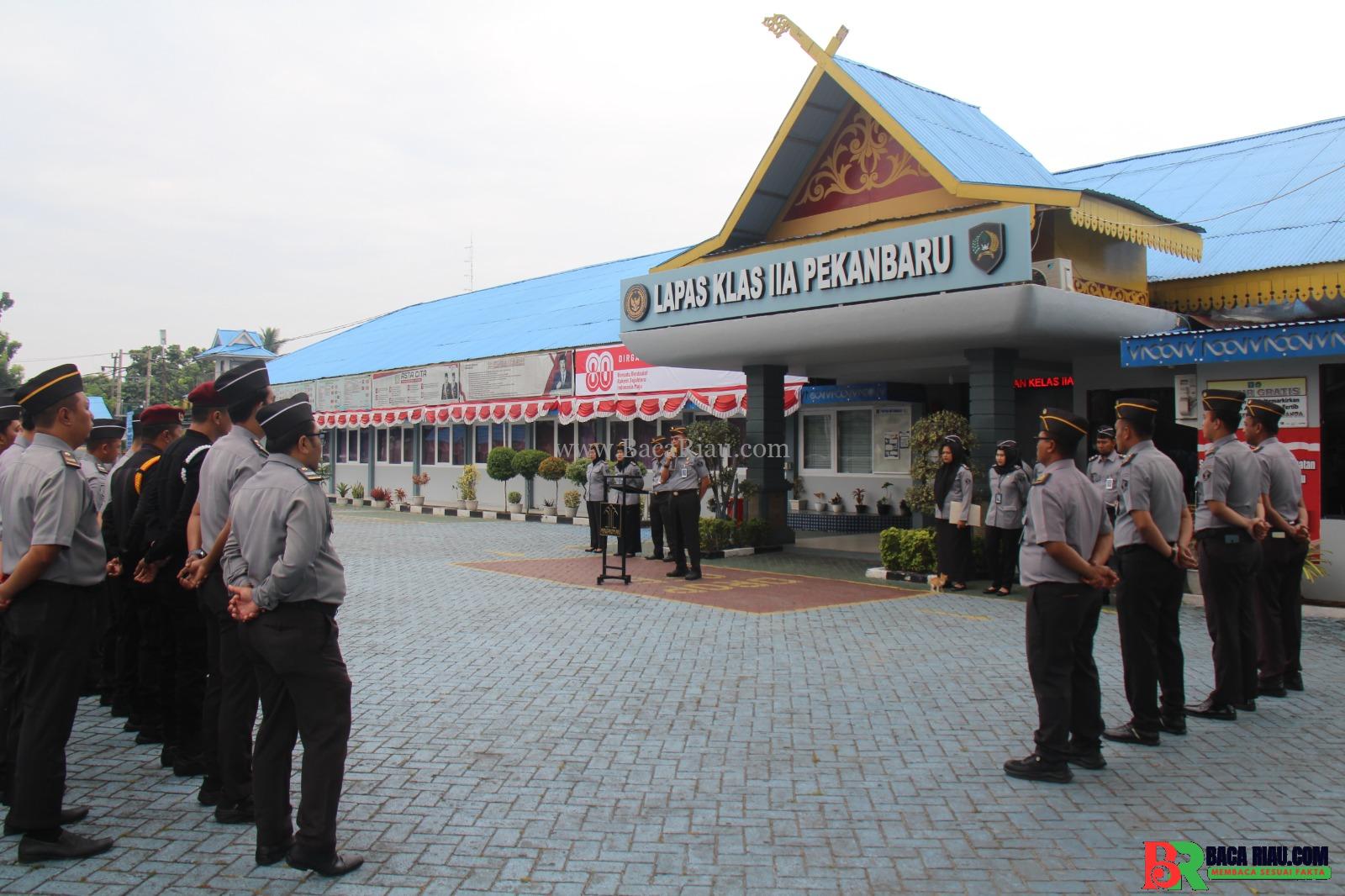 PEKANBARU – BACARIAU.COM– Lembaga Pemasyarakatan (Lapas) Kelas IIA Pekanbaru menggelar apel pagi pada Senin (11/08/2025) yang dipimpin langsung oleh Kepala Seksi Kegiatan Kerja, Jefriandy. Kegiatan apel berlangsung di halaman Lapas Pekanbaru dan diikuti oleh seluruh jajaran pejabat struktural, staf, serta petugas pengamanan.