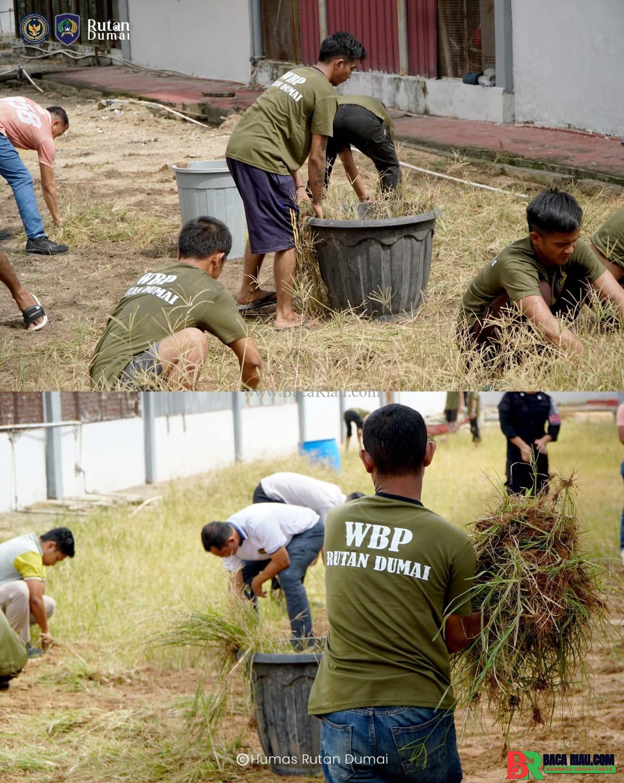 DUMAI,BACARIAU.COM — Semangat kebersamaan terlihat jelas di Rutan Kelas IIB Dumai saat petugas dan warga binaan melaksanakan kegiatan gotong royong membersihkan area branggang, Sabtu (22/11).