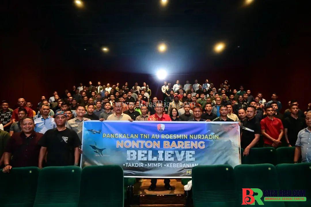 PEKANBARU – BACARIAU.COM – Dalam rangka membangkitkan semangat, motivasi, serta karakter tangguh bagi para prajurit, Lanud Roesmin Nurjadin menggelar kegiatan _intimate screening_ film Believe-Takdir, Mimpi, Keberanian. Kegiatan ini dilaksanakan di Studio XXI Mall Ciputra Seraya Pekanbaru, selama dua hari berturut pada Senin (21/7/2025) dan sesi kedua pada Selasa (22/7/2025) besok, dengan melibatkan personel yang telah ditunjuk secara bergiliran.