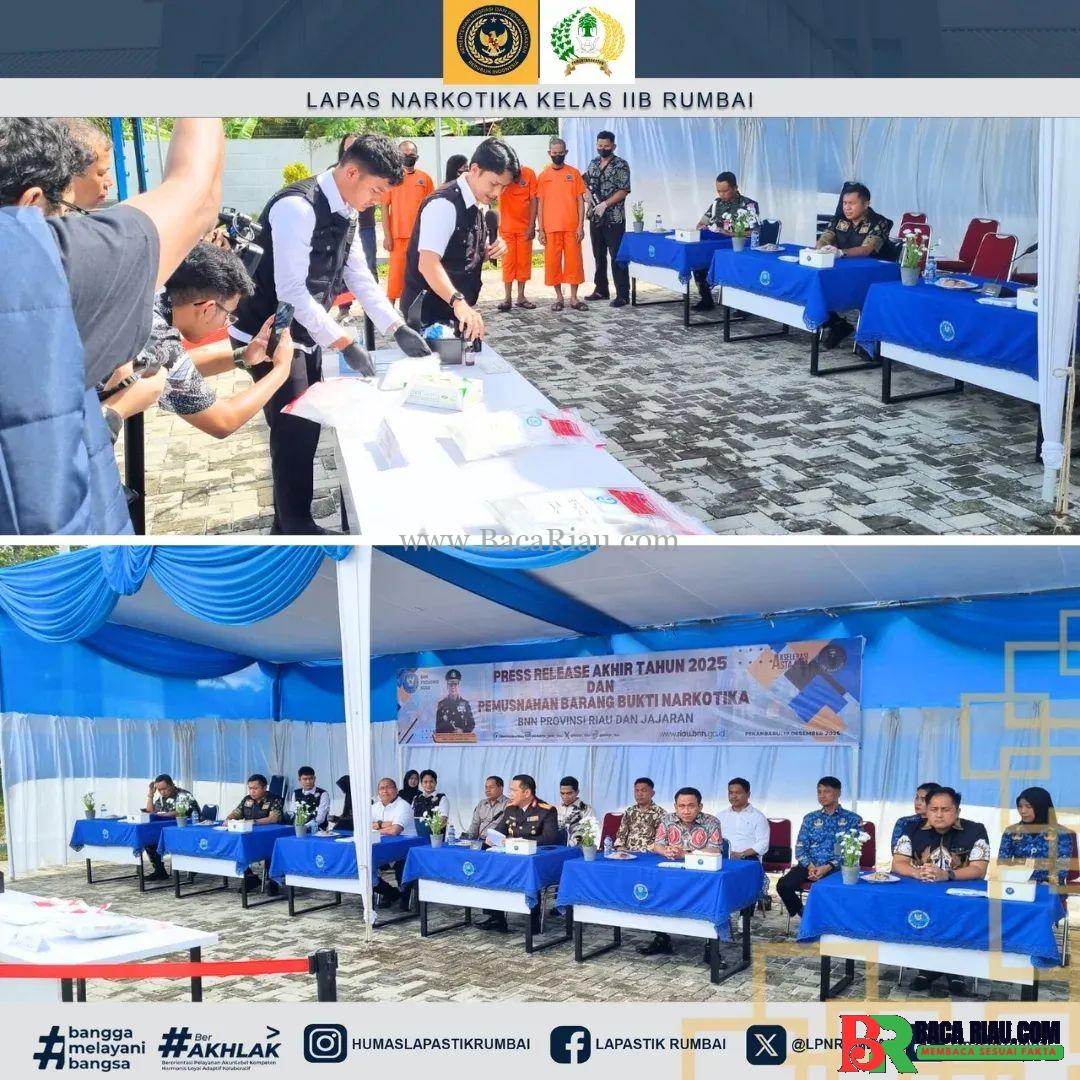PEKANBARU,BACARIAU.COM– Dalam rangka melaksanakan 13 Program Akselerasi Menteri Imigrasi dan Pemasyarakatan, Lembaga Pemasyarakatan (Lapas) Narkotika Kelas IIB Rumbai yang diwakili oleh Kepala Seksi Binadik dan Giatja, Ralphy Prasetyo bersama jajaran menghadiri pemusnahan barang bukti shabu seberat 2004,83 Gram dan Ganja 815,5 Gram bersama BNNP Riau, Jum’at (19/12/2025).