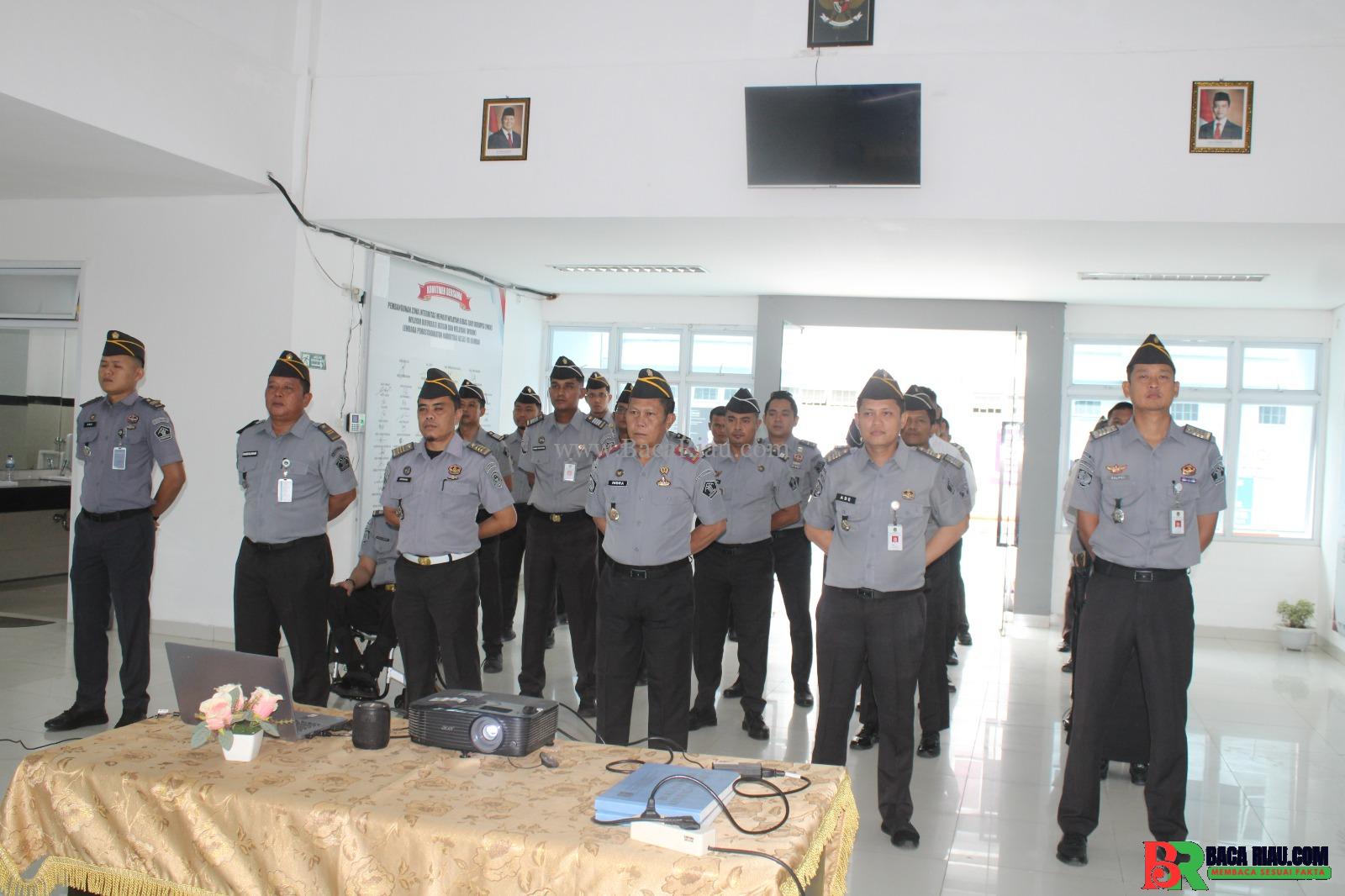 PEKANBARU — BACARIAU.COM- Lembaga Pemasyarakatan (Lapas) Narkotika Kelas IIB Rumbai mengikuti kegiatan apel bersama yang diselenggarakan oleh Kementerian Koordinator Bidang Hukum, HAM, Imigrasi, dan Pemasyarakatan, Kementerian Hukum, Kementerian Ham dan Kementerian Imigrasi dan Pemasyarakatan secara virtual melalui aplikasi Zoom, Senin (15/09/2025). Kegiatan ini dipimpin langsung oleh Wakil Menteri Koordinator Bidang Hukum, HAM, Imigrasi, dan Pemasyarakatan, Bapak Otto Hasibuan.