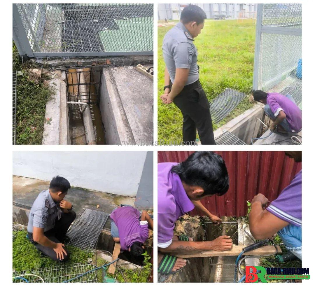 PEKANBARU – BACARIAU.COM– Lembaga Pemasyarakatan (Lapas) Narkotika Kelas IIB Rumbai, Pekanbaru, melakukan pemasangan teralis pada saluran pembuangan air di blok hunian warga binaan, Selasa (19/8/2025).