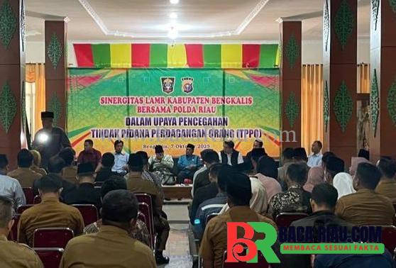 BENGKALIS ,BACARIAU.COM– Lembaga Adat Melayu Riau (LAMR) Kabupaten Bengkalis bersama Kepolisian Daerah (Polda) Riau menjalin sinergitas dalam upaya pencegahan Tindak Pidana Perdagangan Orang (TPPO). Kegiatan tersebut digelar di Aula Gedung LAMR Kabupaten Bengkalis, Jalan Pramuka, Kelurahan Air Putih, Kecamatan Bengkalis, pada Selasa (7/10/2025).