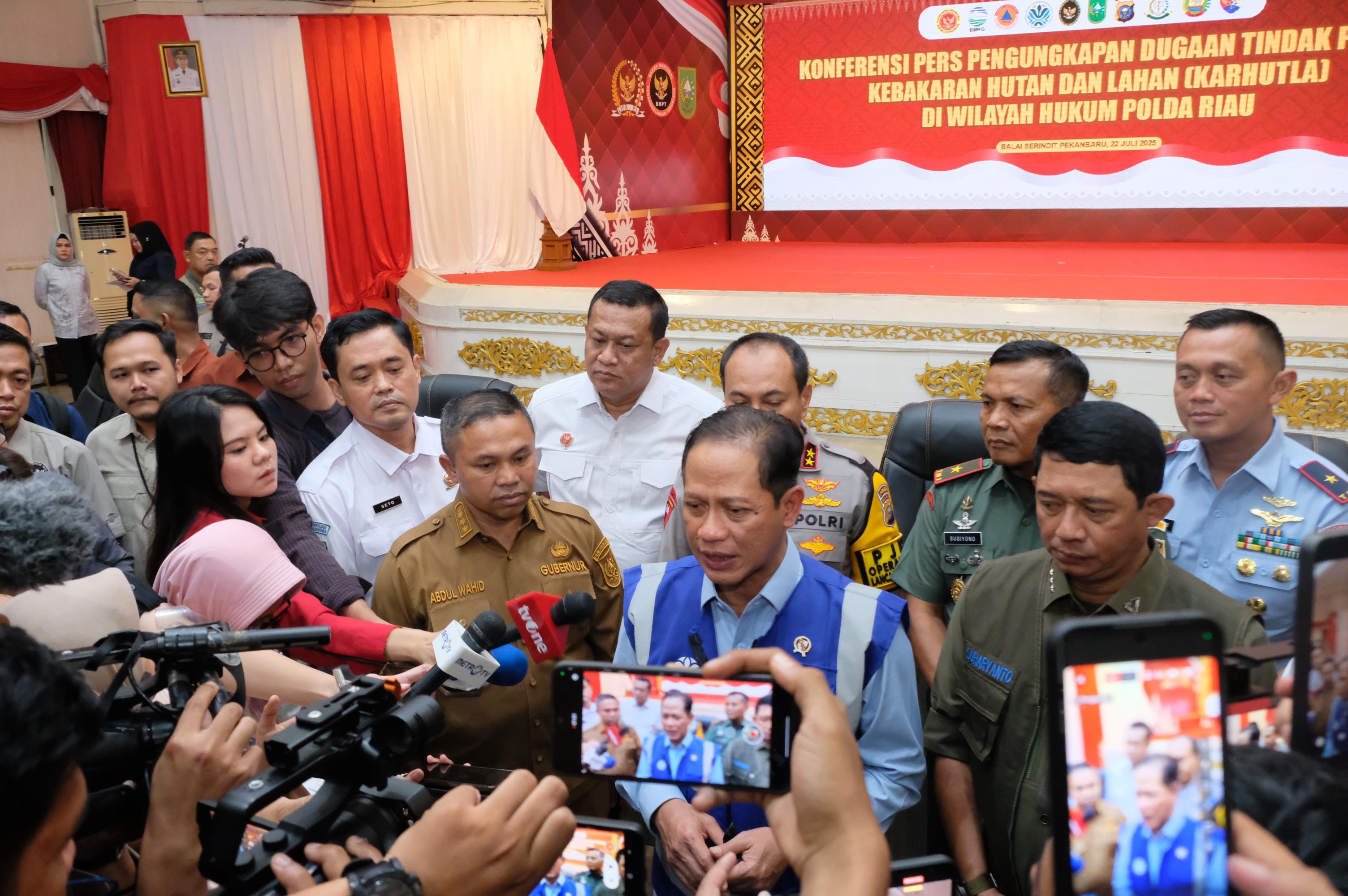 Hal itu disampaikan oleh Menteri Hanif Faisol saat menghadiri konferensi pers di kantor Gubernur Riau, Pekanbaru, Selasa (22/7/2025). Hadir juga dalam kesempatan ini, Gubernur Riau Abdul Wahid, Kapolda Riau Irjen Herry Heryawan, Kepala BNPB Letjen TNI Suharyanto, dan stakeholders lainnya.