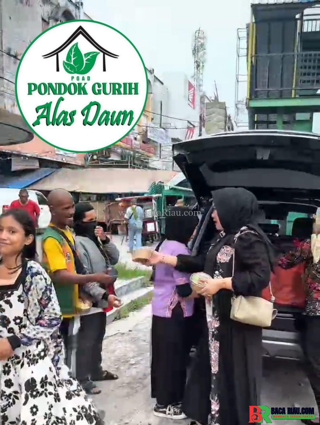 PEKANBARU – BACARIAU.COM– Bentuk kepedulian antar sesama, Pondok Gurih Alas Daun (PGAD) bagikan nasi kota kepada pedagang asongan, pengemis,Ojol dan tukang parkir.