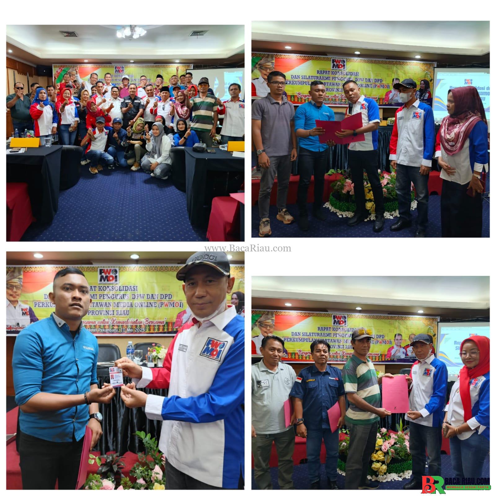 PEKANBARU  – BACARIAU.COM – Perkumpulan Wartawan Media Online Indonesia (PWMOI) Provinsi Riau menggelar Rapat Konsolidasi dan Silaturahmi serta rapat kerja pengurus DPW PWMOI Riau dan DPD PWMOI se Kota/Kabupaten yang di salah satu Ballroom hotel Furaya, Pekanbaru, Sabtu (10/5/2025).