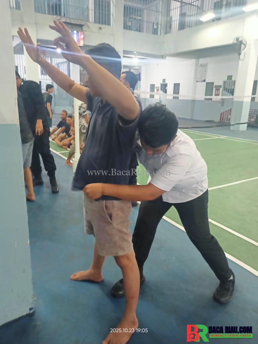 PEKANBARU, BACARIAU.COM— Dalam rangka memastikan situasi keamanan dan ketertiban tetap kondusif, Rumah Tahanan (Rutan) Kelas I Pekanbaru kembali melaksanakan kegiatan razia rutin di blok hunian warga binaan, Kamis (23/10/2025).