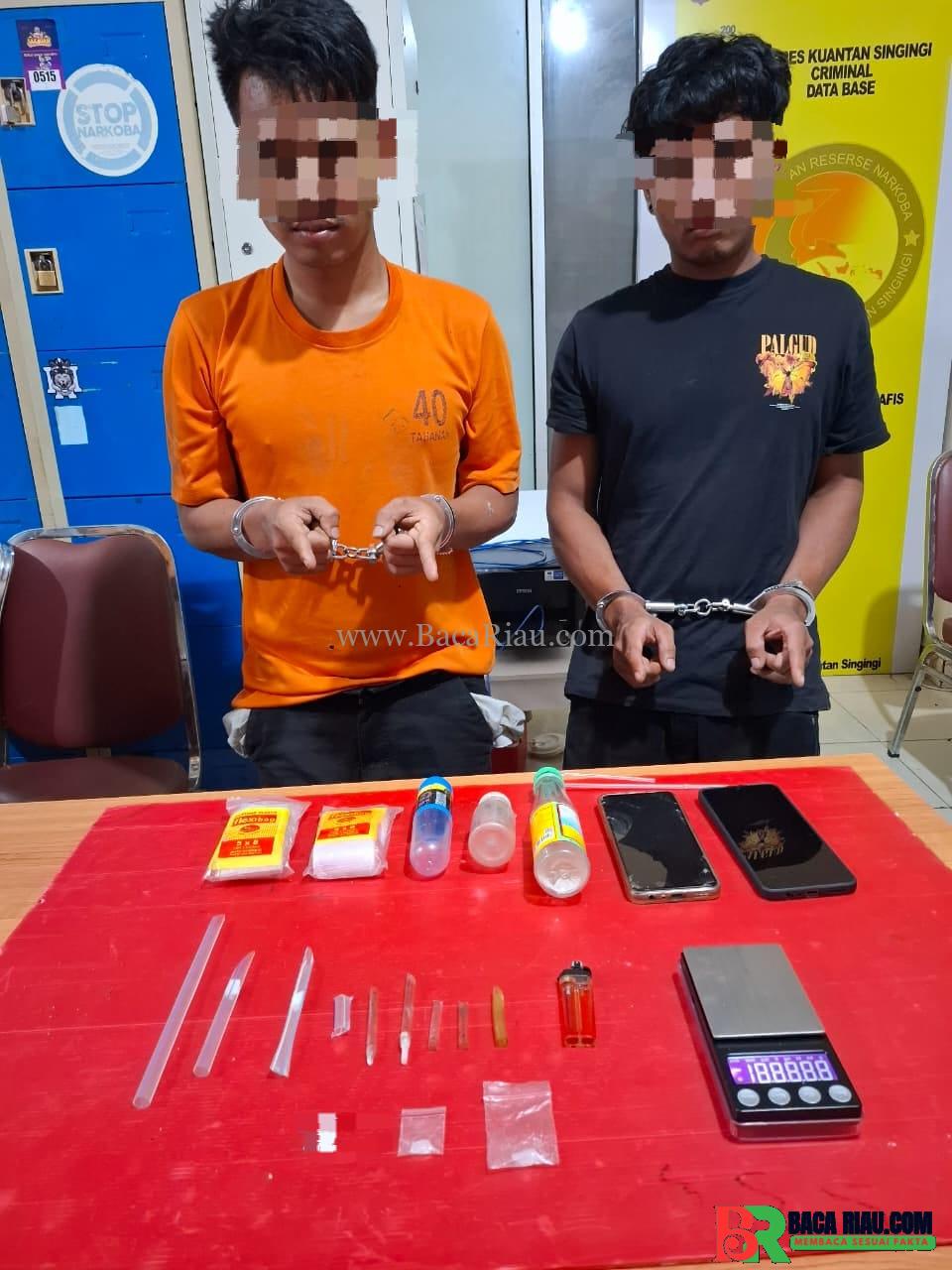Saat ini kedua tersangka beserta barang bukti telah diamankan di Mapolres Kuantan Singingi untuk proses hukum lebih lanjut. Keduanya dijerat dengan Pasal 114 ayat (1) Jo Pasal 112 ayat (1) Undang-Undang Nomor 35 Tahun 2009 tentang Narkotika, dengan ancaman hukuman maksimal 20 tahun penjara.