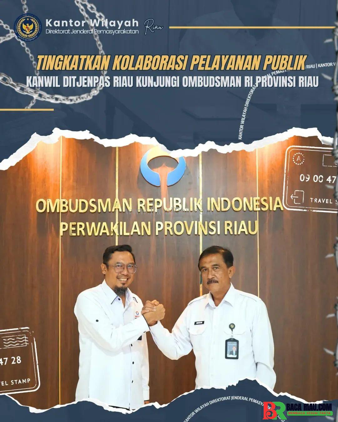 PEKANBARU – (BRC)- Kantor Wilayah Ditjen Pemasyarakatan Riau melakukan kunjungan ke Kantor Ombudsman Republik Indonesia Perwakilan Provinsi Riau. Kunjungan ini bertujuan untuk mempererat sinergi dan meningkatkan koordinasi antar lembaga dalam rangka peningkatan kualitas pelayanan publik, khususnya di bidang pemasyarakatan, Senin, 19 Mei 2025.