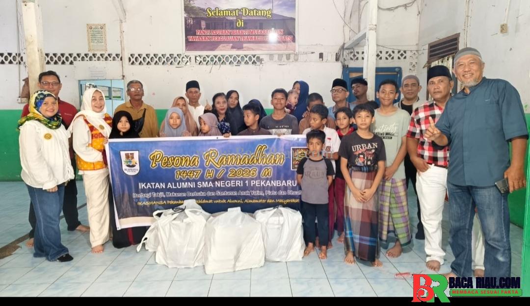 PEKANBARU – BACARIAU.COM-Ikatan Alumni SMA Negeri 1 Pekanbaru menggelar kegiatan sosial berbagi kebahagiaan bersama anak-anak di Panti Asuhan Bhakti Mufaridun, Jalan Jenderal Sudirman, Kota Pekanbaru, pada Senin,(02/03/2026).