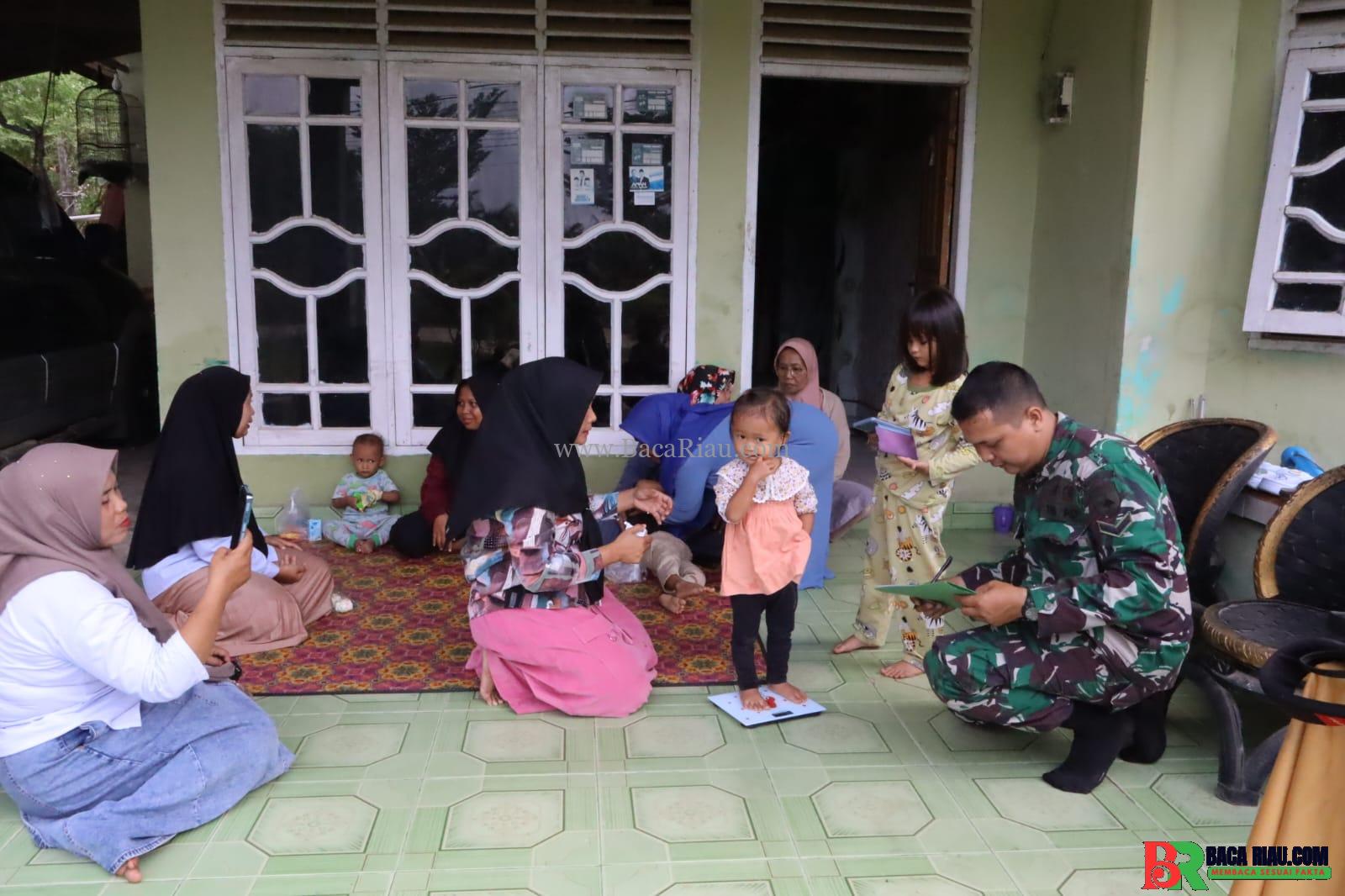 PEKANBARU,BACARIAU.COM-Komitmen TNI AD dalam mendukung percepatan penurunan angka stunting kembali diwujudkan melalui aksi lapangan. Satgas TMMD Ke-127 Kodim 0301/Pekanbaru menyambangi sejumlah balita yang terindikasi stunting di Kelurahan Tuah Negeri, Kecamatan Tenayan Raya, Kota Pekanbaru, Selasa (24/2/2026).